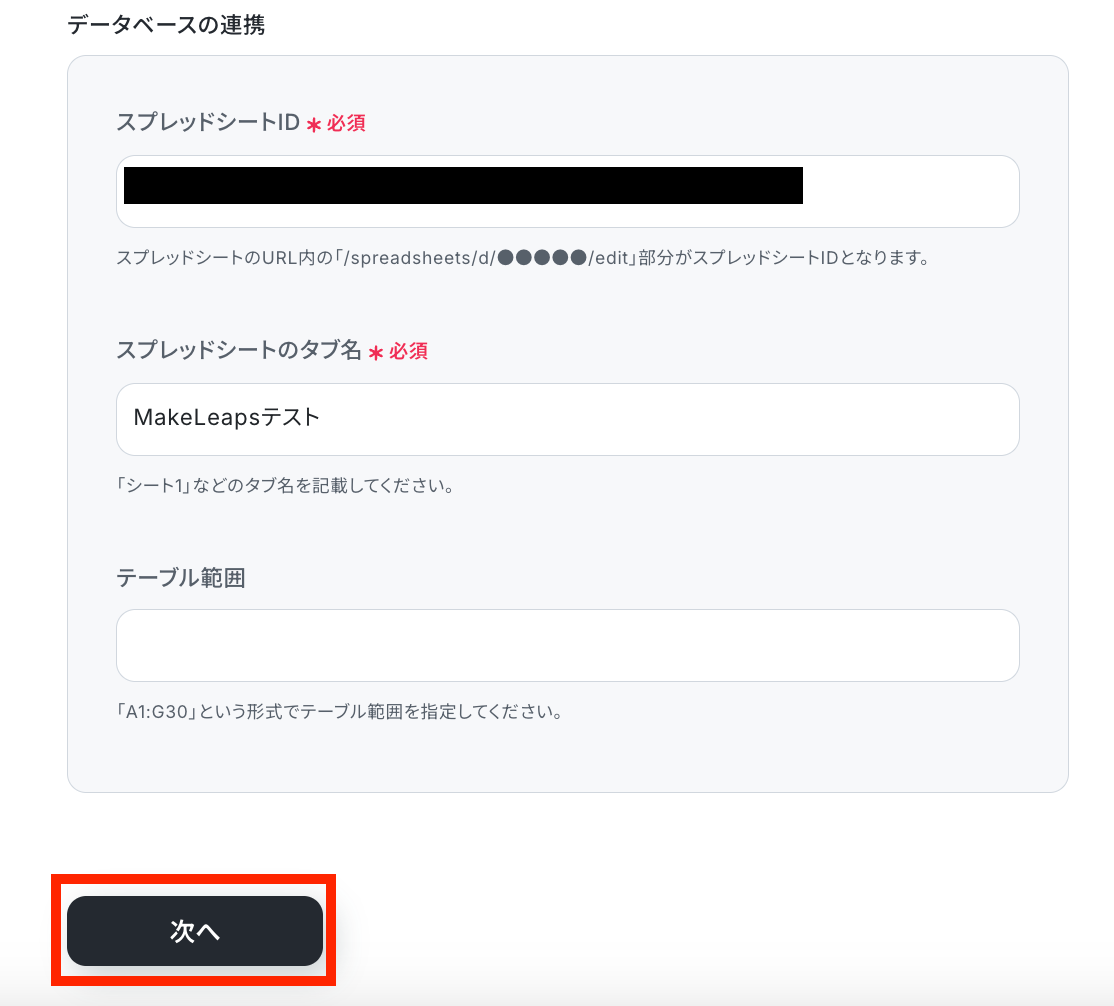 ※Google スプレッドシートの連携方法は以下をご参照ください。