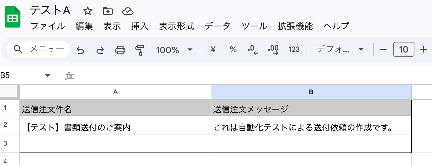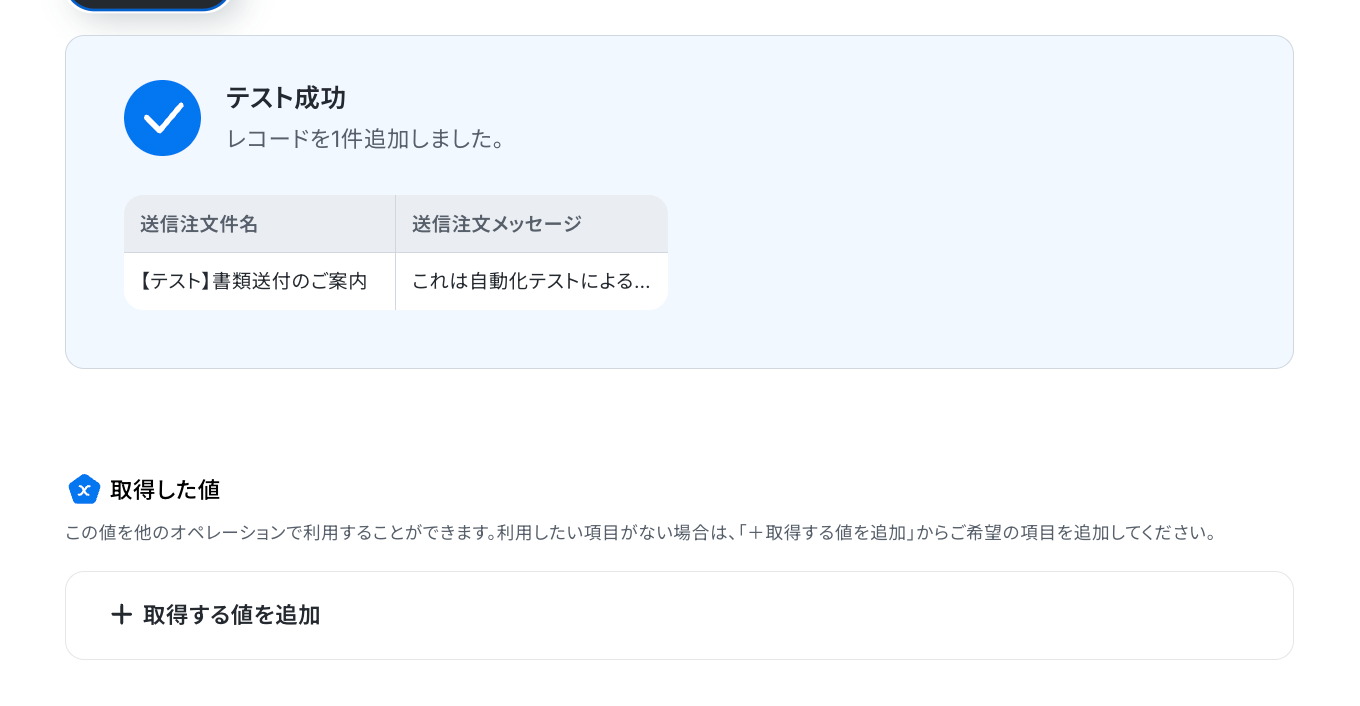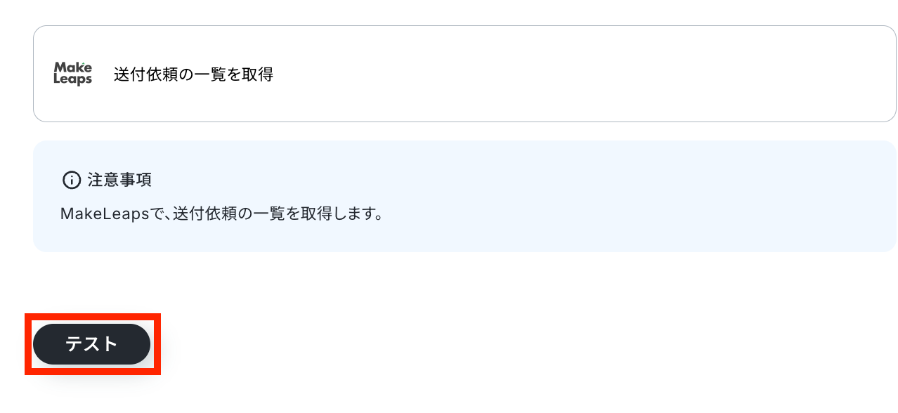 送付依頼の一覧を取得します。「テスト」ボタンをクリックしましょう!