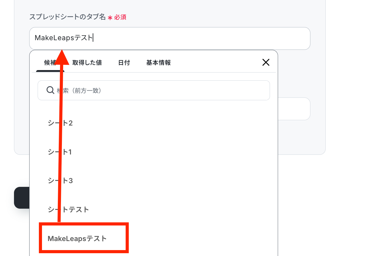 続いて、スプレッドシート内のタブ名も選択しましょう!