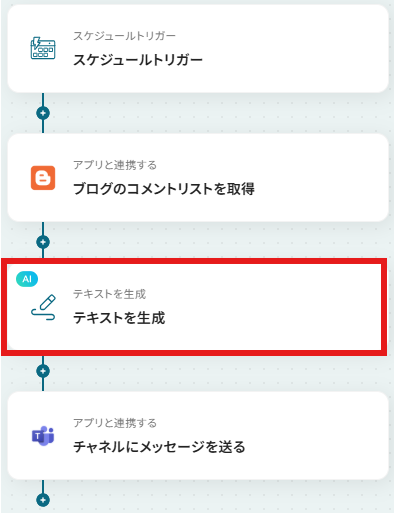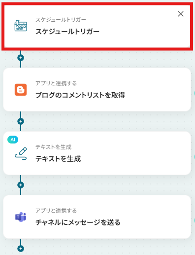 - スケジュールトリガーの設定とBlogger、AI(テキスト生成)・Microsoft Teamsの設定
