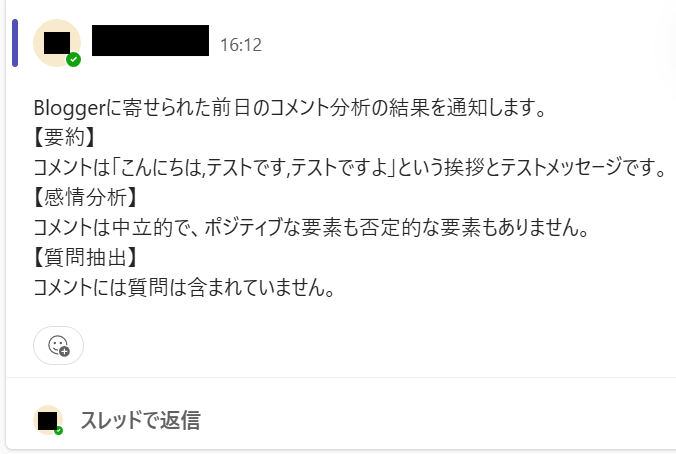 毎朝BloggerのコメントをAIで要約してMicrosoft Teamsに通知する
