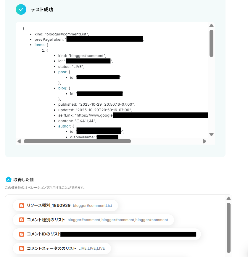 ステップ4:Bloggerのブログからコメントリストを取得する