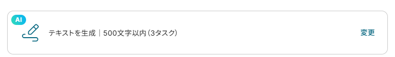 アクションはデフォルト設定のままでOKです。500文字以上にしたい場合は、消費タスクを確認して変更してください。