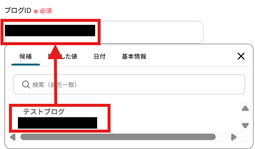 入力が完了したらテストボタンを押します。テストが成功し、取得した値が入れば成功です。