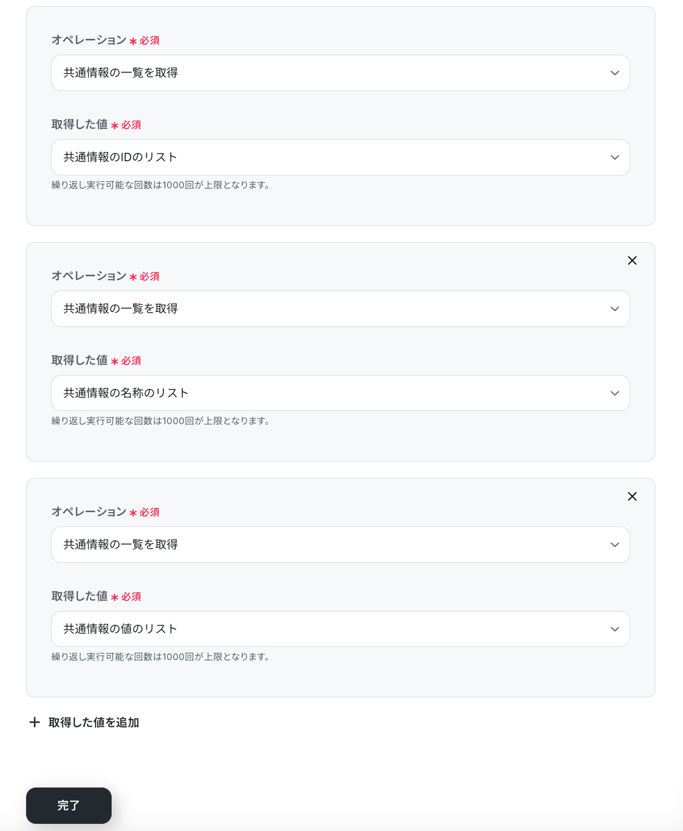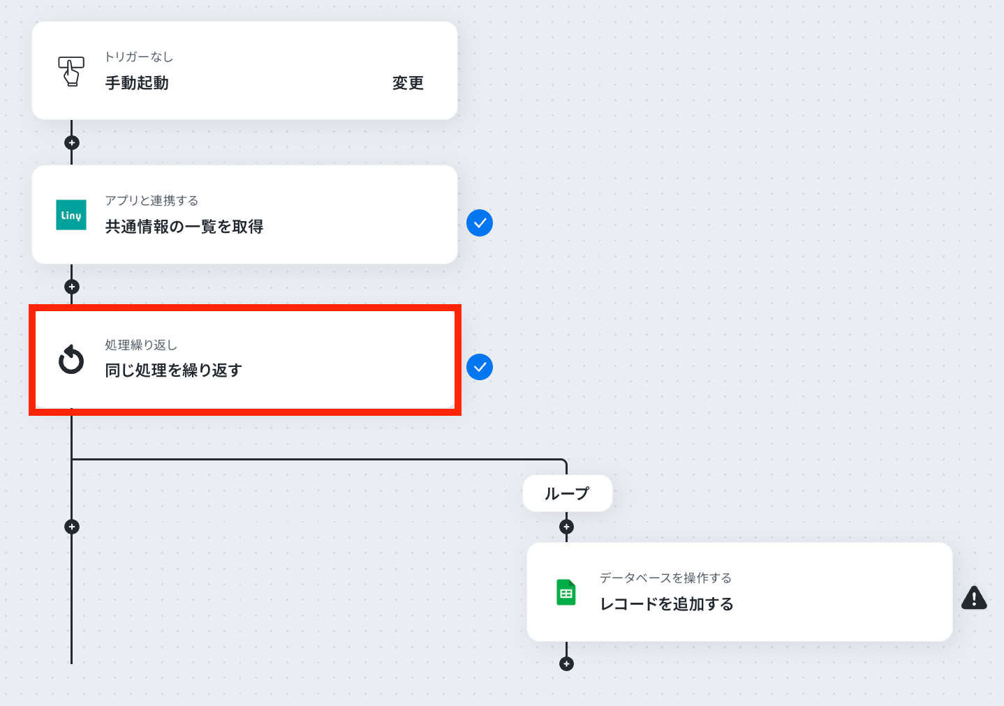 ※「同じ処理を繰り返す」オペレーション間の操作は、チームプラン・サクセスプランでのみご利用いただける機能となっております。
