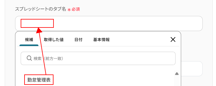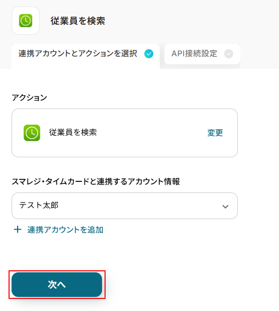 ステップ4:スマレジ・タイムカードの従業員を検索する設定