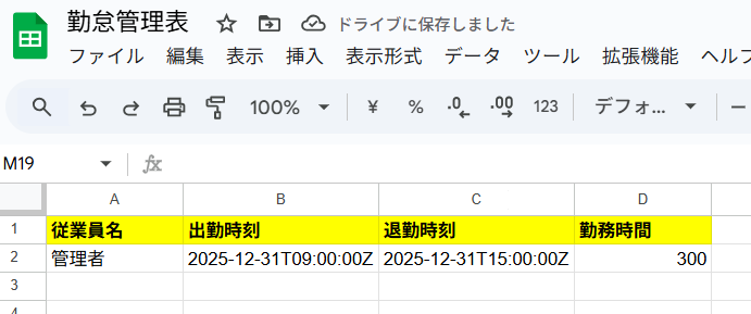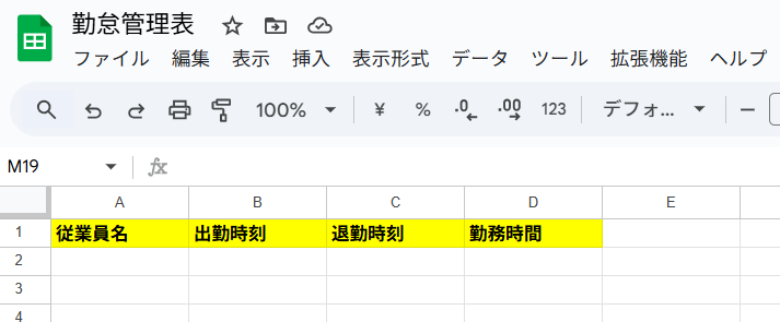 そのため、まずは勤怠情報を記載するためのGoogle スプレッドシートを用意しておく必要があります。