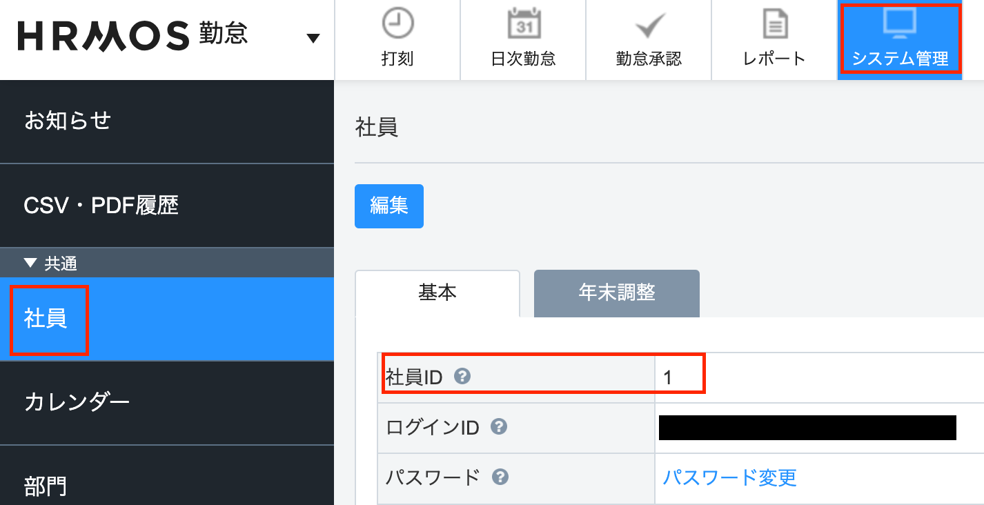 ※「ユーザーID」はHRMOS勤怠で「システム管理」→「社員」→「社員ID」から確認できます。