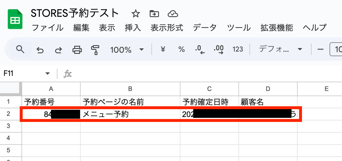 (前日に確定した予約情報を翌日にGoogle スプレッドシートに追加する想定です。なので、SOTRES予約には昨日日付で予約確定したデータがない場合は、事前にテスト用に登録しておいてください!)