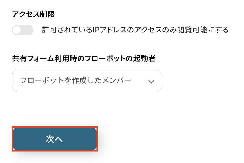 フォームへのアクセス権限は、トグルの切り替えで簡単に設定できます。