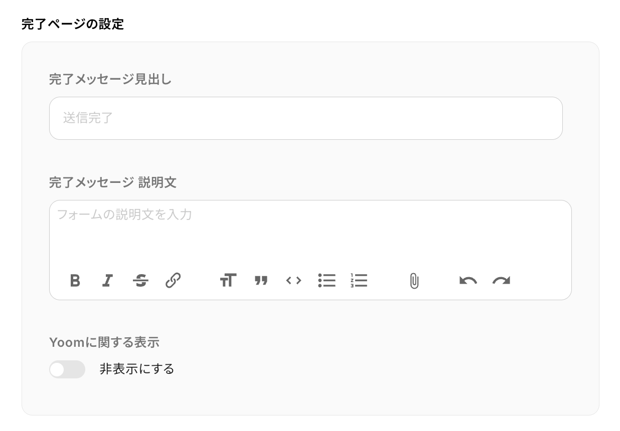 画面を下へスクロールすると、送信完了ページに表示するメッセージを設定できるブロックが表示されます。