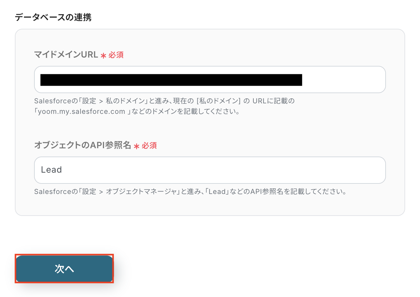 - データベースを操作するオペレーションで、レコード追加や更新を行う際は、Salesforceの入力形式に沿って設定を行ってください。例えば、Salesforceの入力形式が選択式かつ英語入力の場合、選択肢に存在しない値や異なる言語で入力した値はエラーとなりますのでご注意ください。