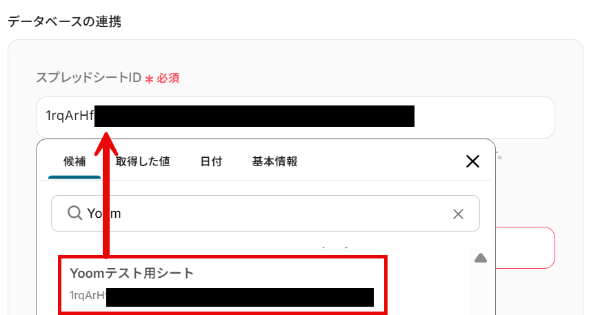 スプレッドシートIDとスプレッドシートのタブ名は候補から選択してください。
