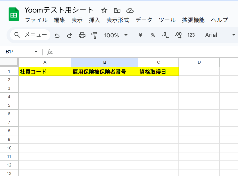 テスト用に以下のGoogle スプレッドシートを準備しました!