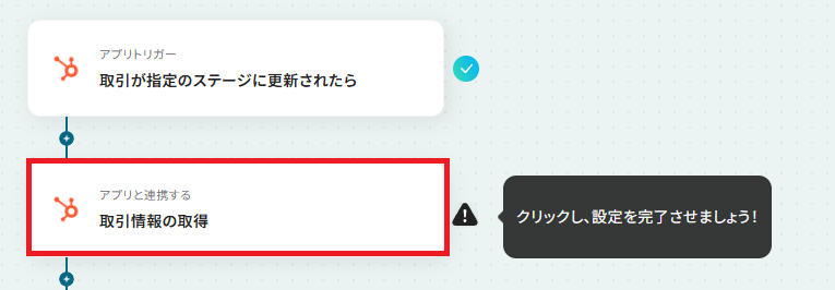 ステップ4:取引情報の取得設定 前ステップで取得した取引IDを基に、取引情報を取得する設定を行います。 「取引情報の取得」を、クリックしてください。