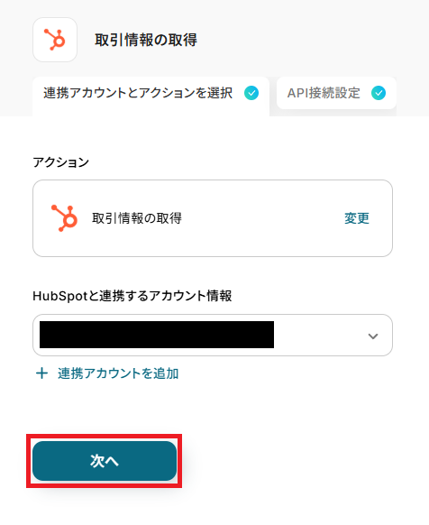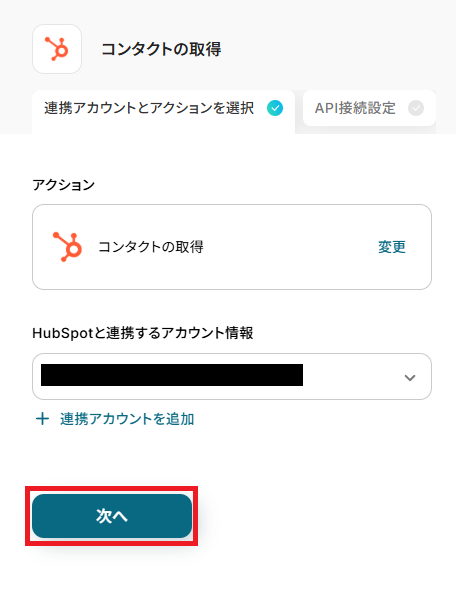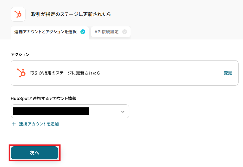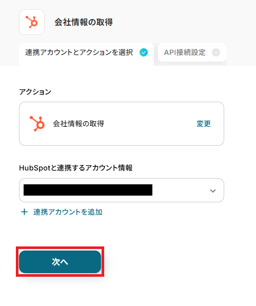 再度、Yoomと連携するHubSpotのアカウントに間違いがないかを確認し「次へ」をクリックしましょう。