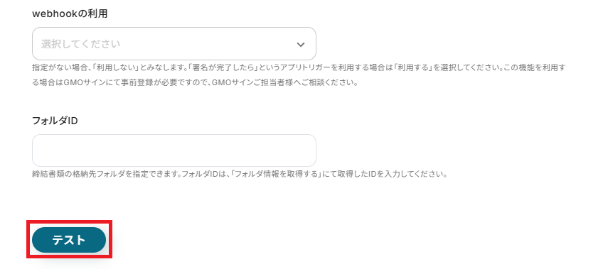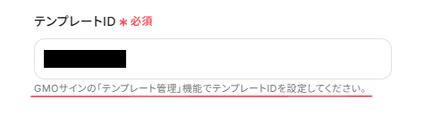 「テンプレートID」は、注釈を確認し任意で設定しましょう。 GMOサインのテンプレート管理に登録されているテンプレートのIDです。