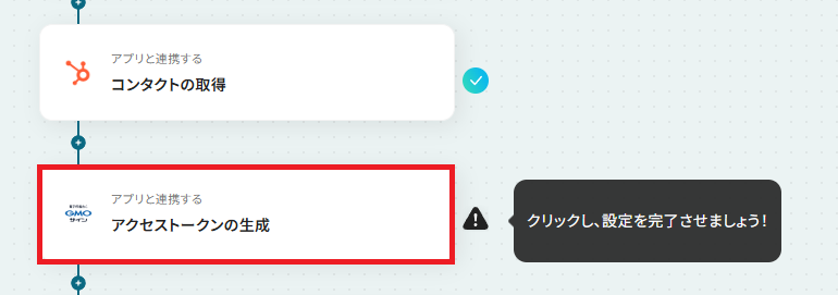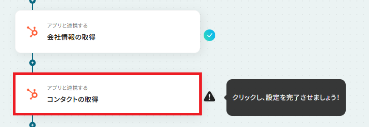 ステップ6:コンタクトの取得設定 取得したコンタクトIDを基に、コンタクト情報を取得する設定を行います。 「コンタクトの取得」を、クリックしてください。