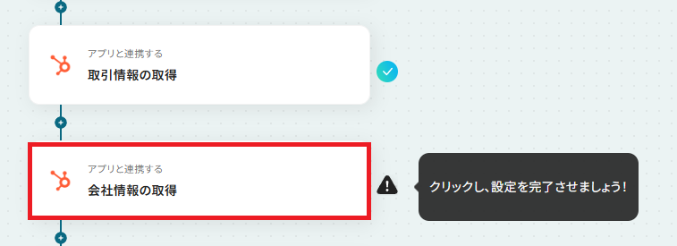 ステップ5:会社情報の取得設定 前ステップで取得した会社IDを基に、会社情報を取得する設定を行います。 「会社情報の取得」を、クリックしてください。