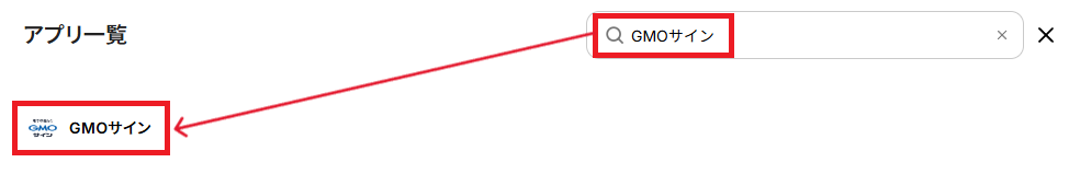 アプリ一覧の検索窓からGMOサインを検索し、クリックします。