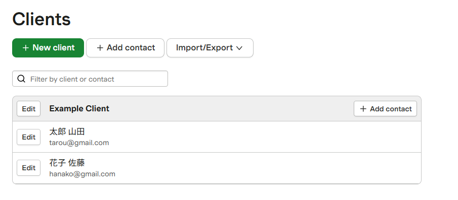 連携テストに使用するためHarvestにClientの登録が無ければ、架空の設定で構いませんので登録しておきましょう。