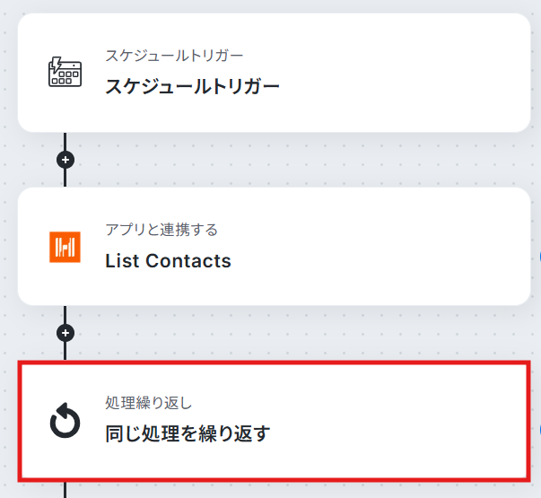 ステップ5:同じ処理を繰り返すアクションの設定次に「同じ処理を繰り返す」という項目をクリックし設定します。