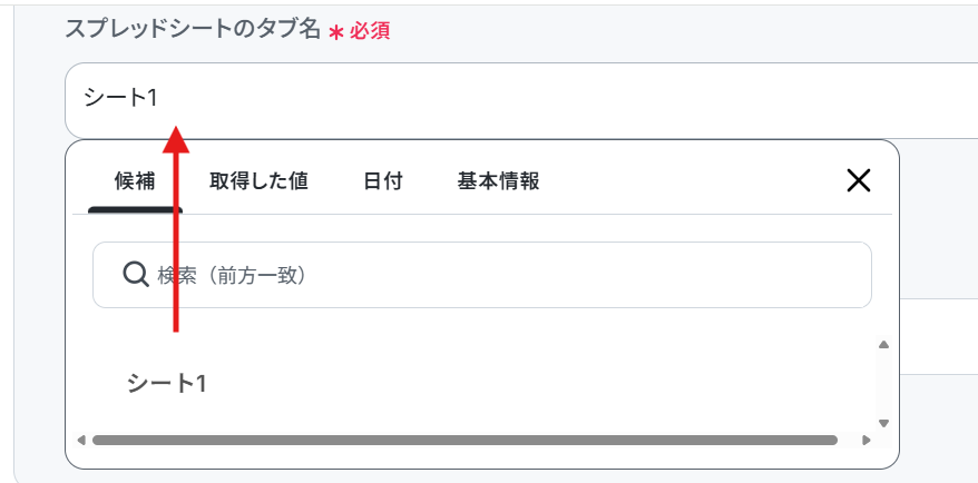 スプレッドシートのタブ名も同様に、候補から選択してください。