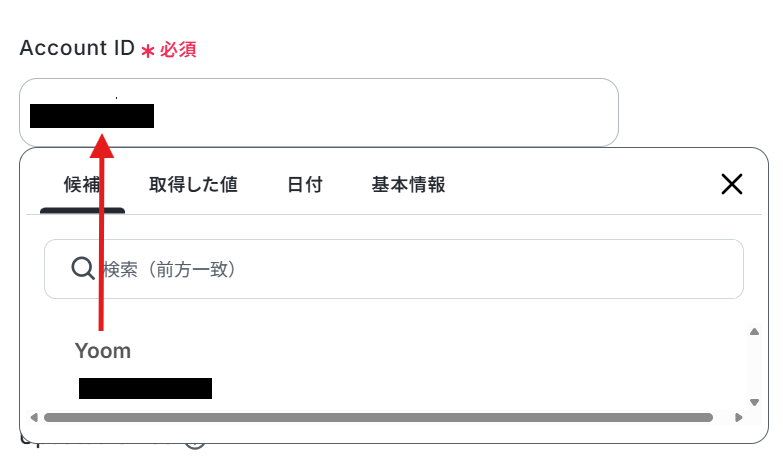 Account IDは、枠内をクリックすると候補が表示されるので選択してください。 設定できたら「テスト」ボタンをクリックします。