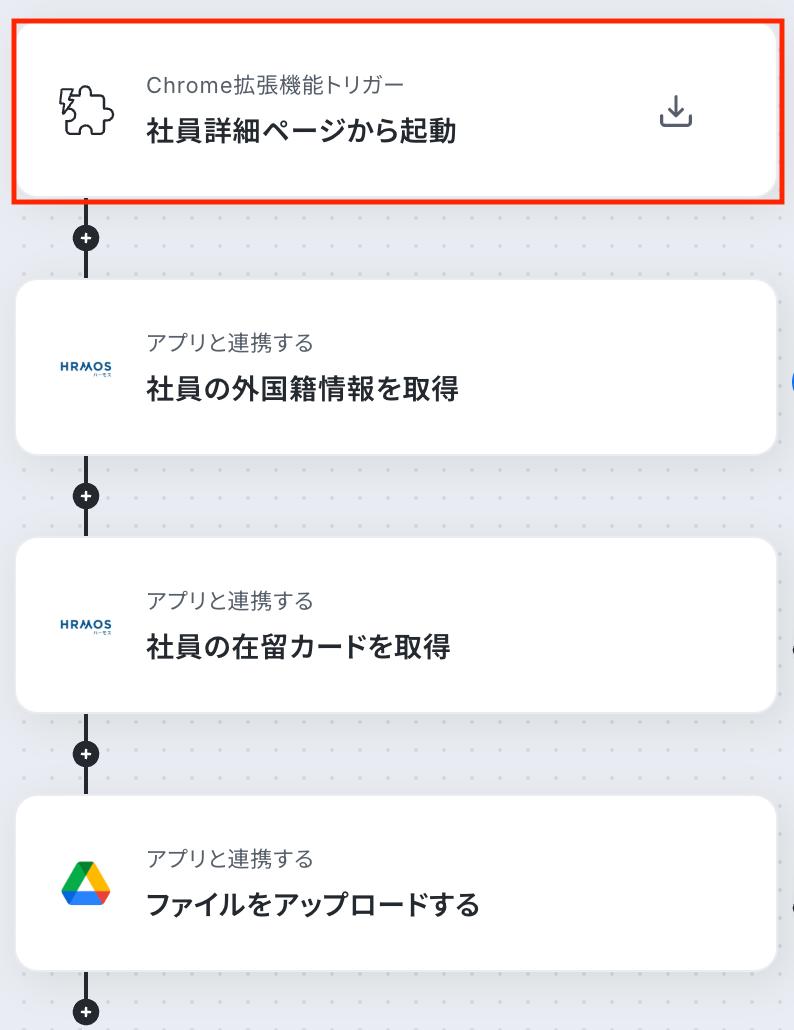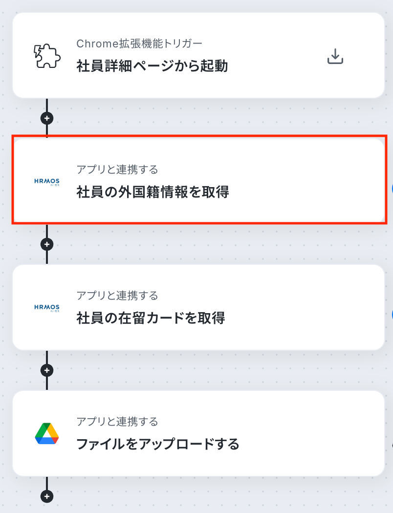 それではここから代表的な例として、HRMOSから在留カード情報を取得し、Google Driveに自動で格納するフローを解説していきます!