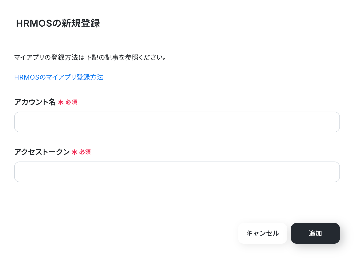 以下の画面が表示されるので、アカウント名とアクセストークンを入力し、「追加」をクリックしましょう。