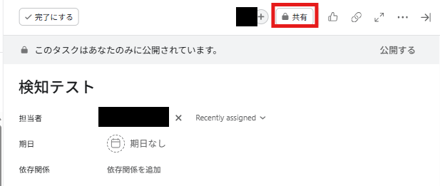 タスクの上部にある「共有」ボタンを押します。