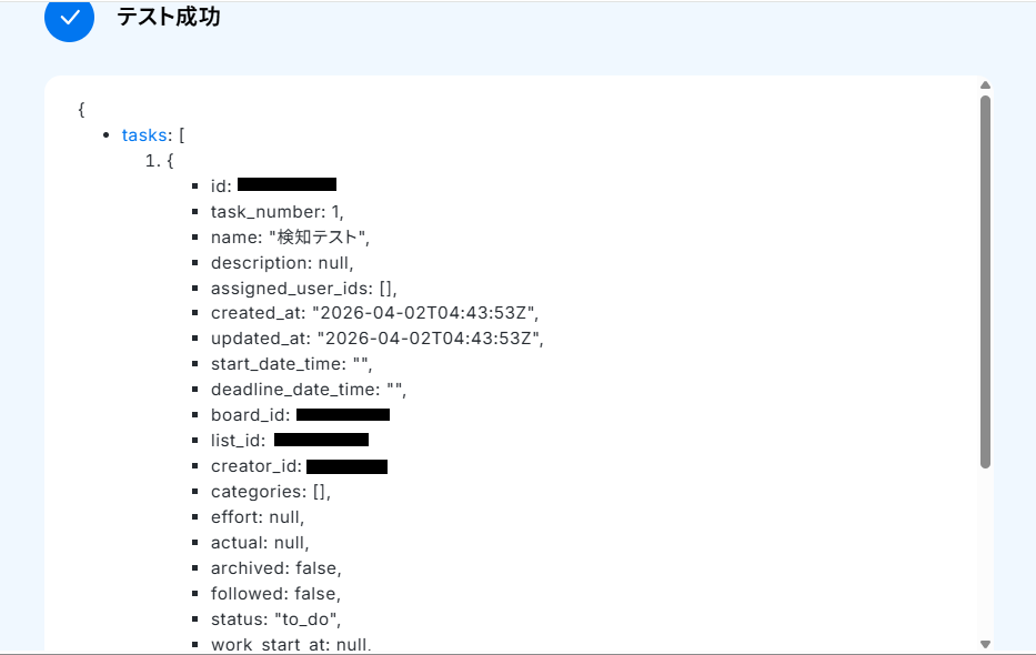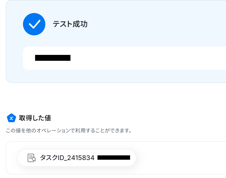 テストが成功すると、該当のタスクIDが表示されます。
