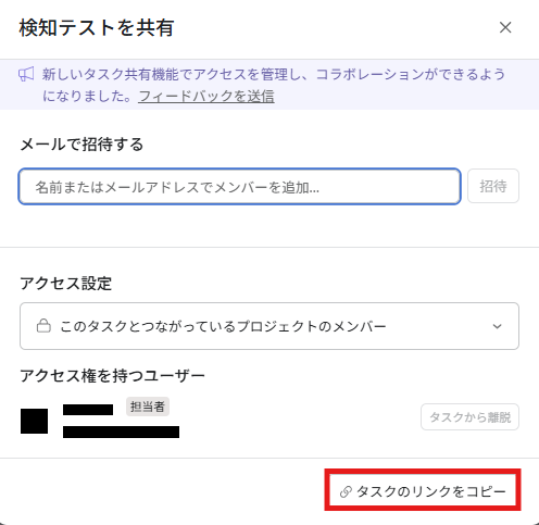 続いて、タスクのリンクをコピーをクリックします。
