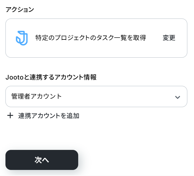 ステップ4:Jootoの特定のプロジェクトのタスク一覧を取得する設定