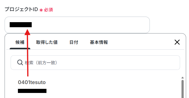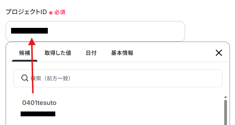 プロジェクトIDの枠内をクリックすると候補が表示されます。