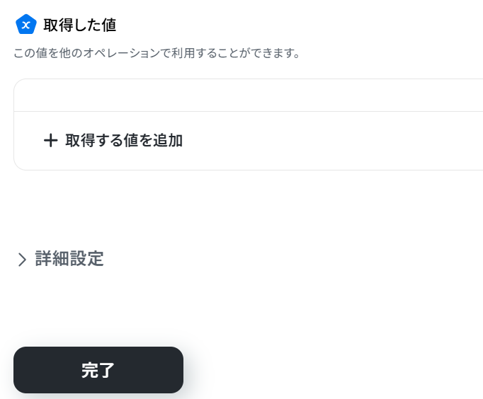 問題無く取得した値が表示されていたら「完了」ボタンをクリックしましょう。