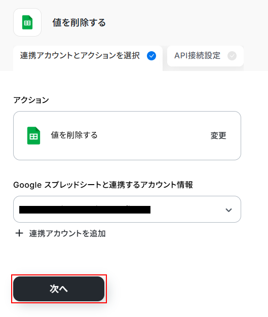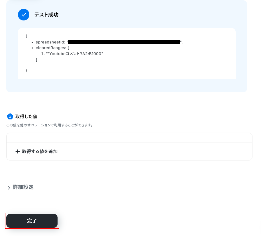 ステップ5:Google スプレッドシートの値を削除する設定