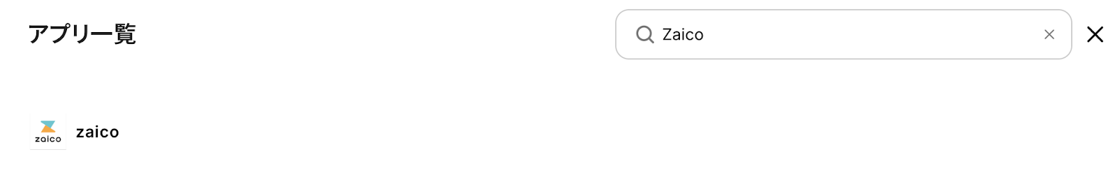 新規接続をクリックしたあと、アプリのメニュー一覧が表示されるのでZaicoと検索し、対象アプリをクリックしてください。