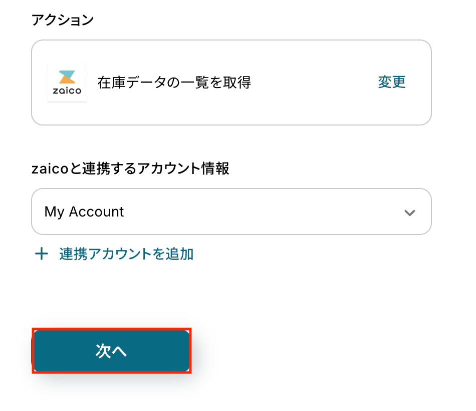 zaicoと連携するアカウント情報に問題がなければ、「次へ」をクリックします。