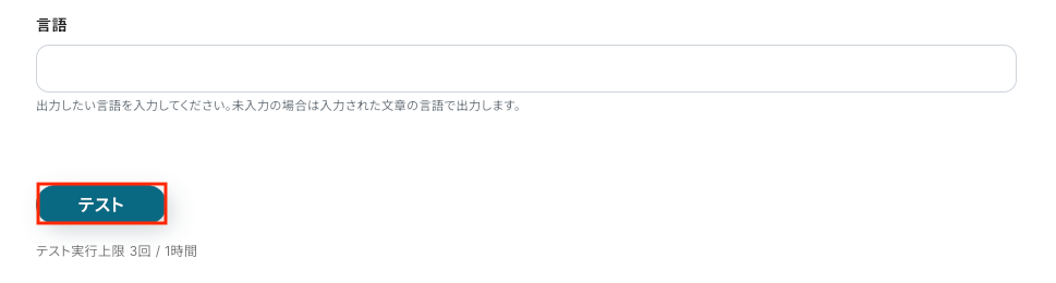 入力が完了したら「テスト」をクリックして、設定した内容で正しくテキストが生成されるか確認してみましょう。