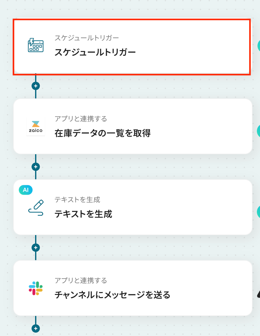 それではここから毎日zaicoの在庫情報を確認し、在庫が不足している場合にSlackへ自動で通知するフローを解説していきます!