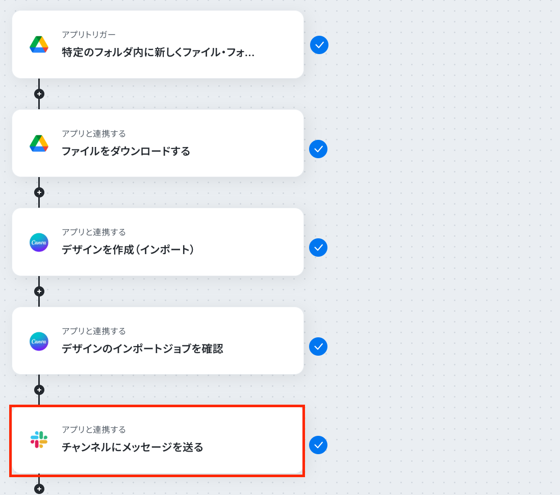 Google Driveにファイルがアップロードされたら、Canvaでデザインを作成しSlackに通知する