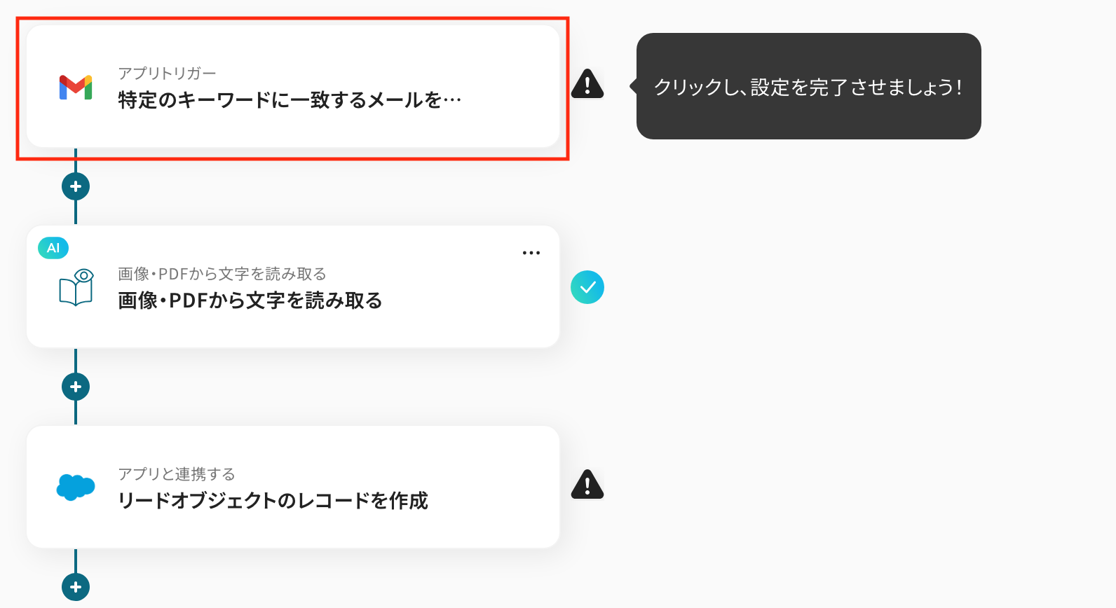 Gmailのトリガー設定とOCR、Salesforceのアクション設定