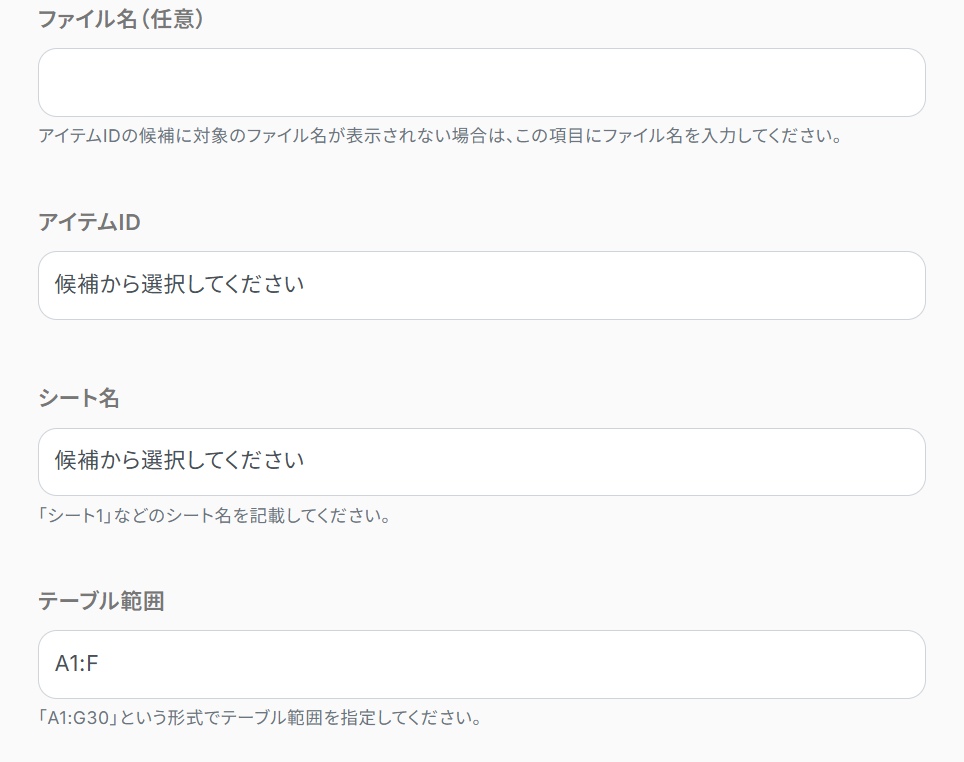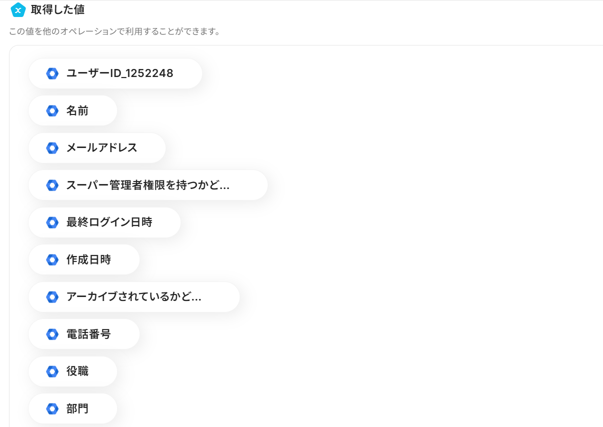 追加したい項目を固定値で入力してしまうと毎回それが登録されてしまうので、取得した値は必ずアウトプットから選択してください。