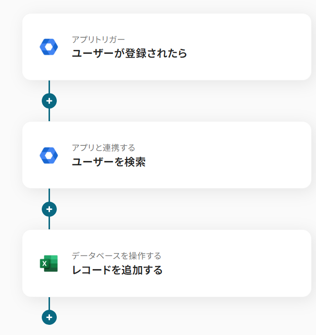 それではここから代表的な例として、Google Workspaceに新しいユーザーが登録された際に、そのユーザー情報をMicrosoft Excelの指定したファイルに自動で入力するフローを解説していきます!
