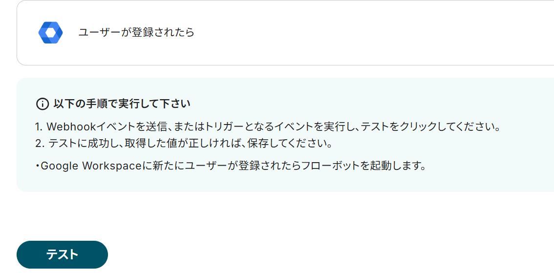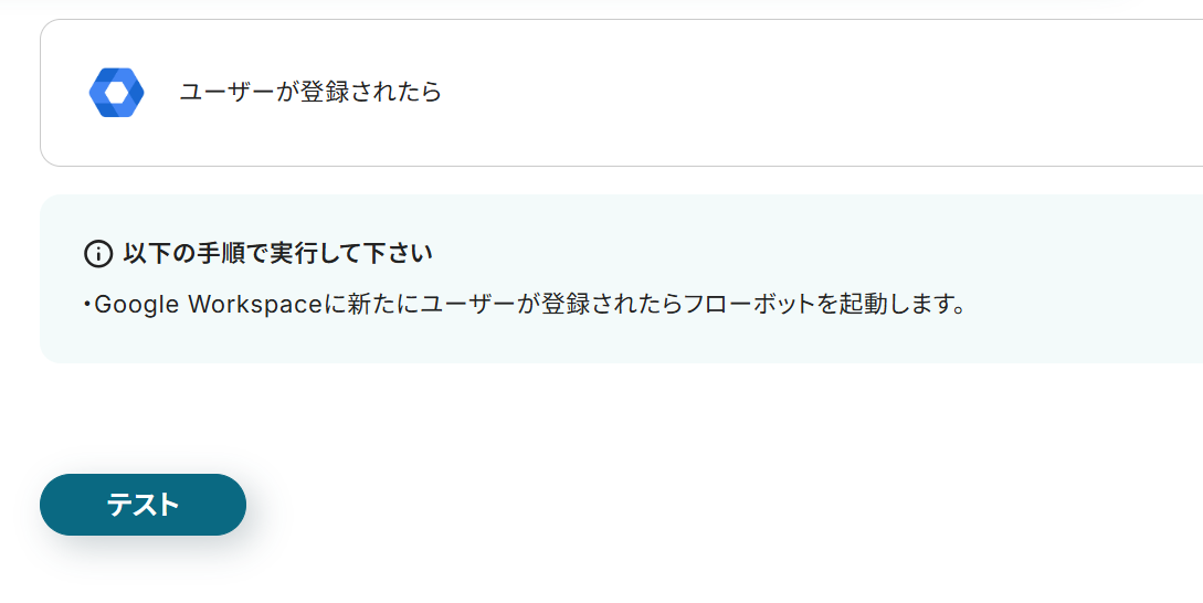 Google Workspaceでユーザーが登録されたら、Notionにも追加するフローです。