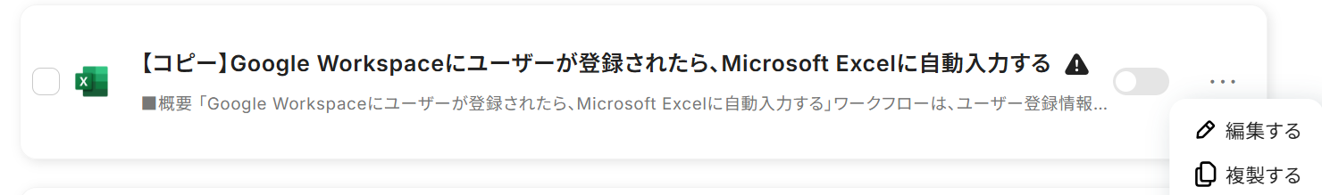 「Google Workspaceにユーザーが登録されたら、Microsoft Excelに自動入力する」ワークフローは、ユーザー登録情報の転記作業を自動化します。