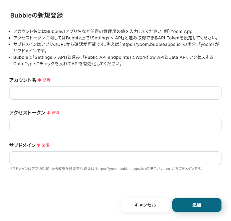 - YoomのフォームトリガーとBubbleのマイアプリ連携