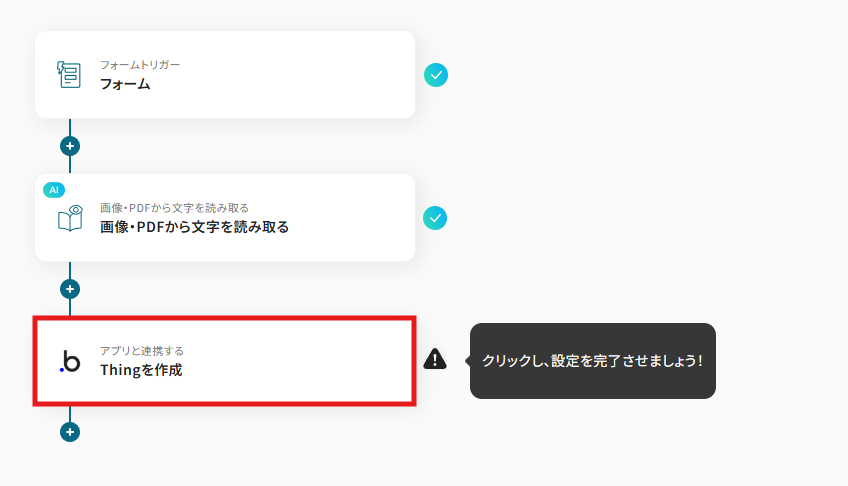 ここでは例として、「フォームで送信されたファイルをOCRで読み取り、Bubbleにデータを追加する」自動化フローの作成手順を簡単にご紹介します。Yoomなら、画面の指示に沿って進めるだけで、複雑な設定もスムーズに組み立てられます。