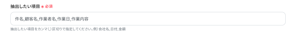追加で抽出したい項目をカンマ(,)区切りで指定してください。